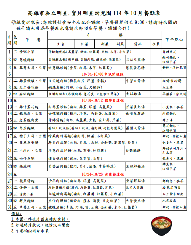 114學年度上學期 明星.寶貝明星幼兒園《準公共》收費表