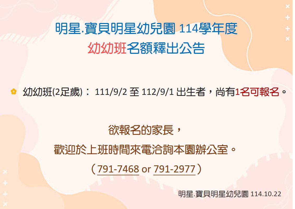 114學年度上學期 明星.寶貝明星幼兒園《準公共》收費表