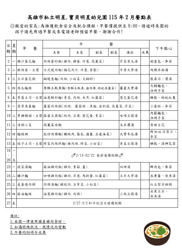 115年2月 餐點表