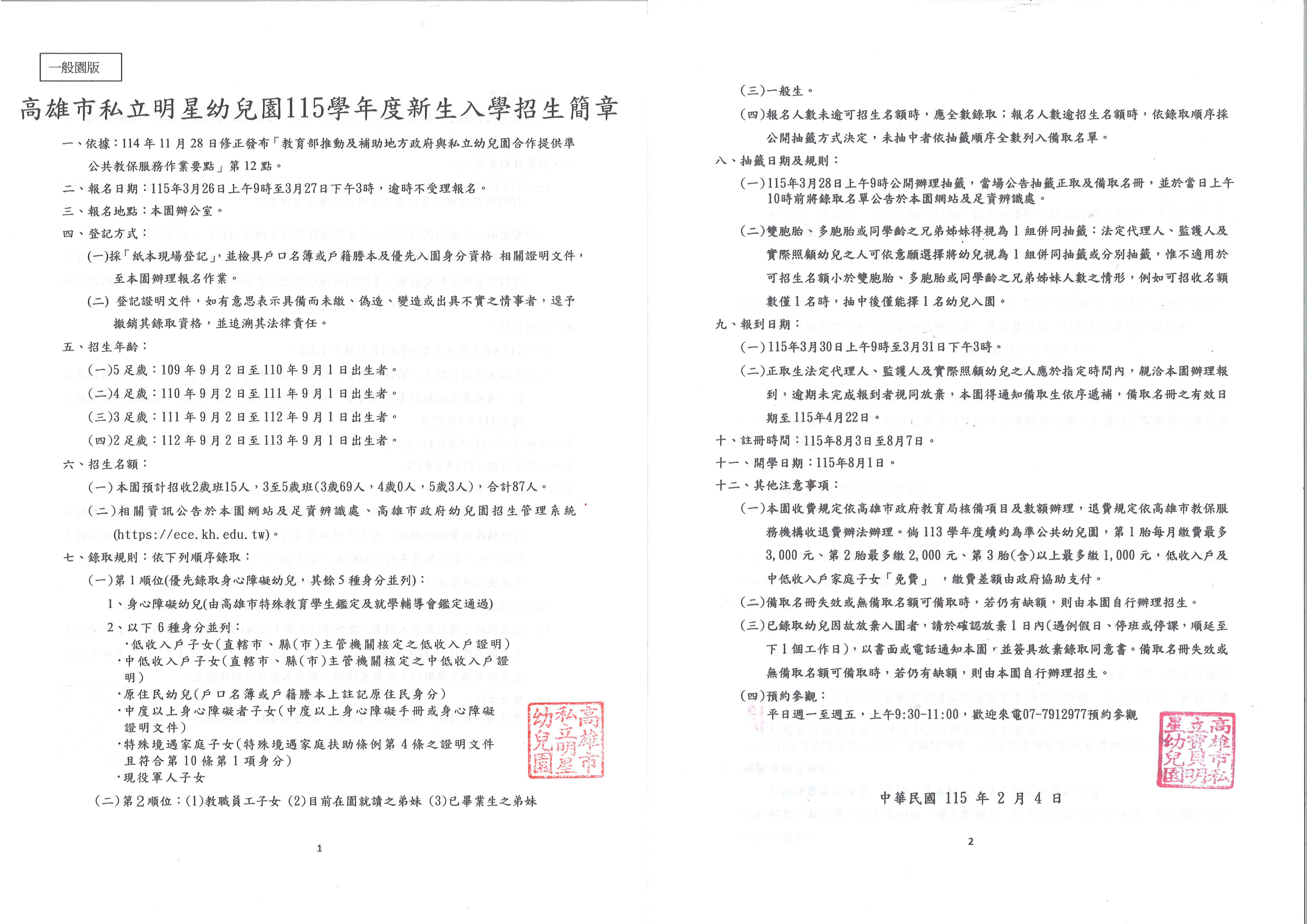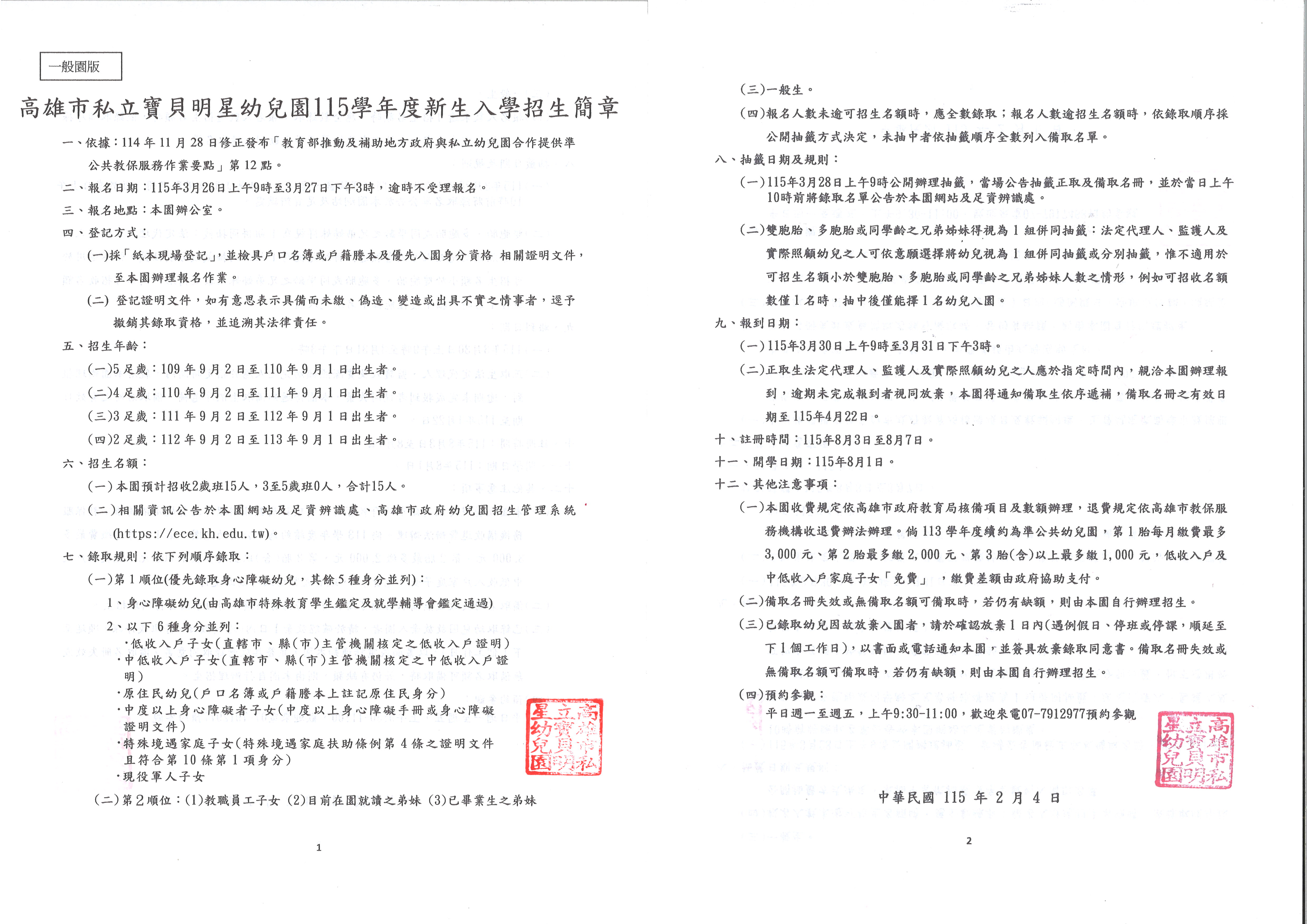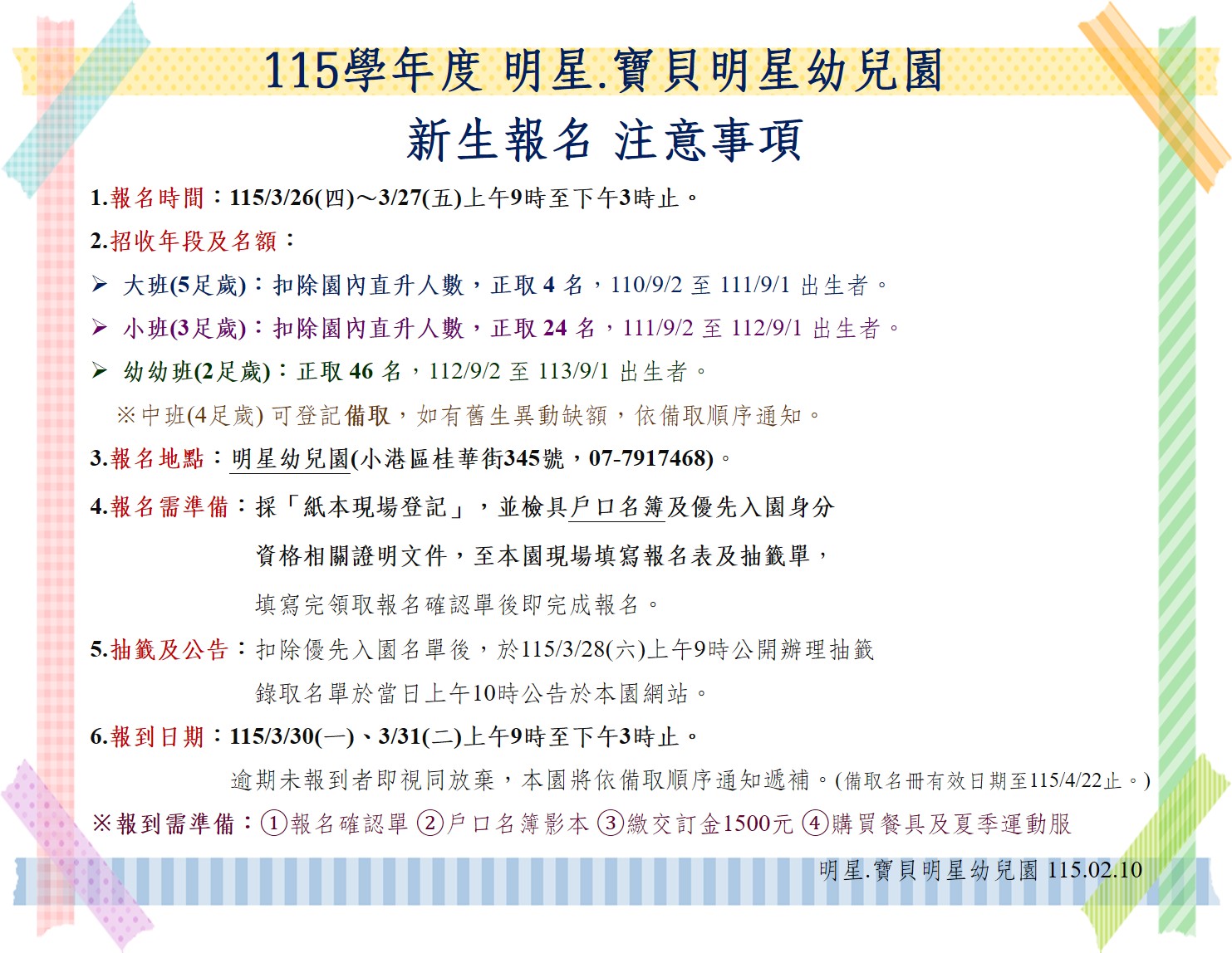⭐115學年度新生《報名注意事項及招生簡章》公告⭐